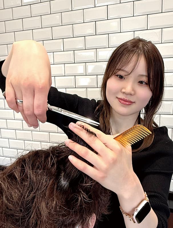 私はこの理容の世界に足を踏み入れて一年ですが、日々お客様 に喜んで頂ける事にとても喜びを感じています。 お客様が綺麗になって笑顔になって頂けることが私にとって一番やりがいを感じています。 また、日々多くのお客様と接する事でいろいろな事を学び、経験させて頂いて充実した日々を過ごしています。